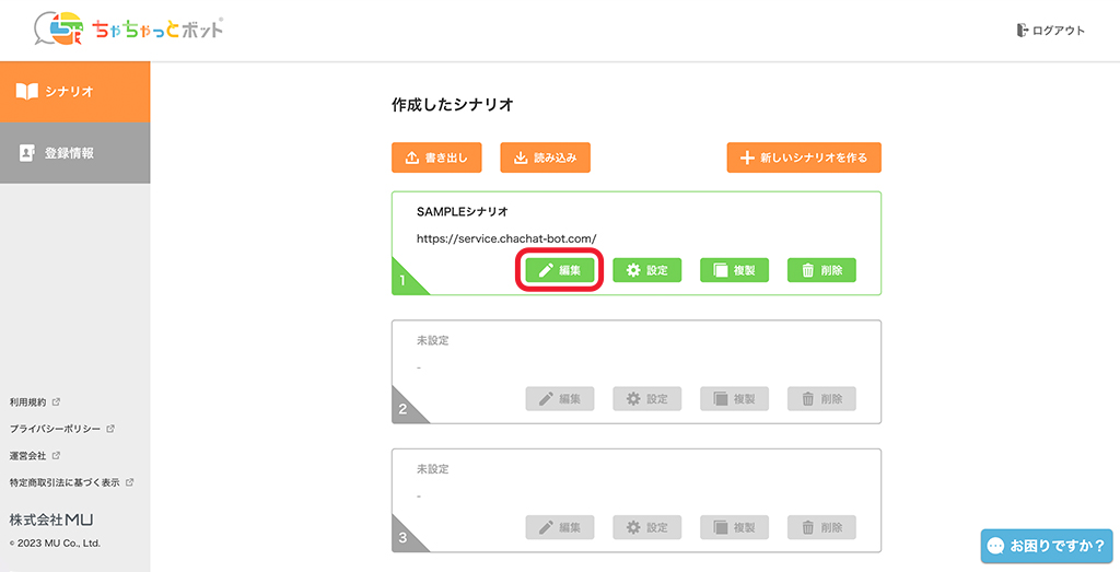 チャットボット冒頭の挨拶文を変更するには、以下の手順で行います。