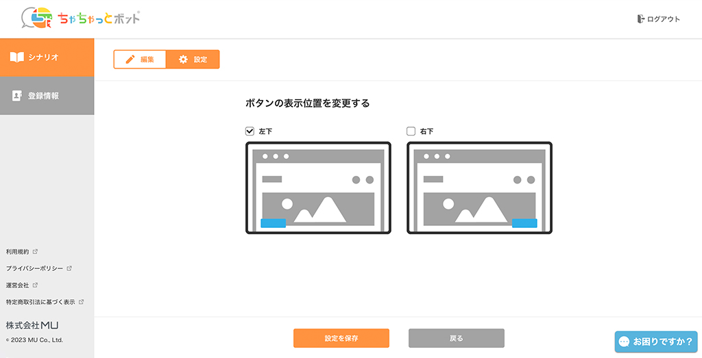 チャットボットの表示場所を変更するには、以下の手順で行います。